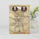 Para a sua equipe alegre num casamento temido de piratas. Apresentando um Jolly Roger correspondente para a Noiva Pirata e o Groom Pirata em um antigo pergaminho decorado com um polvo ao redor de cada um.Personalize com os nomes da noiva e noivo, o local e endereço e a data.Savvy?