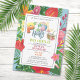 Convite de aniversário cheio de vibrações coloridas e divertidas para uma festa de piscina com cocktails! Atualize facilmente todo o texto (além do design de piscina de de ) para fazer com que isso funcione completamente para você e suas próprias necessidades. Uma fronteira colorida de flores tropicais rodeia um design ousado que soletra a "festa da Piscina" onde a palavra piscina é soletrada com um salva-vidas e uma bola de praia, acompanhada por uma bebida de coco ao lado.