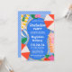 Convite para festas de formatura segundos graus coloridas, modernas e modernas. Os detalhes da festa estão escritos na água azul da piscina em texto branco. A vista aérea mostra as mulheres que tomam banho de sol, os guarda-chuvas vermelhos e brancos, as bolas de praia, as flores tropicais e as folhas de palma. O azulejo azul e branco fornece o fundo. Este item faz parte da coleção de Partidos de Piscinas de Graduação.