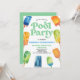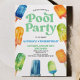 Este é um Convite de aniversário de picolé de Piscina Verde Azul.