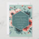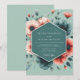 Embrace a moody and romantic aesthetic with this stunning artistic design. The painterly composition features deep teal anemones and vibrant coral poppies, creating a dramatic contrast against a soft pistachio green backdrop. This elegant botanical artwork is perfect for a sophisticated, modern affair.