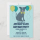Jogue uma massa incrível com este belo filhote e estes convites de festas de aniversários personalizados. Estas apresentam uma ilustração de um pit bull cachorrinho vestindo óculos e um arco de gravata cercado por balões com todos os detalhes de sua festa abaixo.