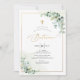 Convites PixDezines Batismo de eucalipto rústico em aquarel