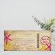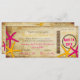 Cartão de embarque PixDezines para um casamento de destino. Starfish rosa e amarelo com fundo de safena.