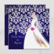 PixDezines Bride 2 B. com Haute Coutour Damask com fundo azul real (personalizável). Nós também temos cor de buquê diferente para você escolher. Se você quiser uma cor diferente, simplesmente nos envie um pedido. . Noiva elegante, romântica e delicada. Convites de casamento temporários. Copyright © 2011 PixDezines.com e PixDezines no zazzle.com