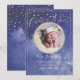 PixDezines Sobre a Lua, cartões de anúncio de nascimento, com lua prateada e estrelas prateadas cintiladas (a cor real é o ouro, com filtro b+w) para receber sua nova adição. Nós acentuamos com a diversão e o moderno guião manuscrito. Copyright © 2017-2018 PixDezines™. Todos os direitos reservados.