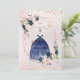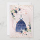 PixDezines quinceanera marinho azul, rosa dourado, flores a aquarelas em marinho azul, Rosas de pincel e Hydrangeas. Nós acentuamos com borboletas em rosa-pincelado. Fundo iridescente de pinceladas, cortado como uma armação de porta simbolizando uma nova porta para entrar em outra fase da vida. Todos os elementos são editáveis.