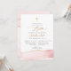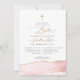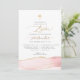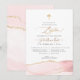 PixDezines Convite de batismo, com ágata aquarela em rosa bege e veias douradas, uma cruz acentuada com fonte de caligrafia de luxo. Todos os elementos são editáveis e removíveis.