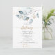 PixDezines minimalista Batizado, com eucalipto Blue Gum aquarela em dourado falso e pó dourado acentuado com caligrafia de luxo. Todos os elementos são editáveis e removíveis.