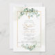 Batismo PixDezines, com aquarelas verdes e goma Eucalyptus; uma cruz de ouro falsa, poeira de ouro e uma armação acentuadas com escrita de caligrafia de luxo. Todos os elementos editáveis e removíveis.