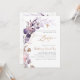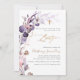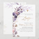PixDezines Convite Bautizo, com folhagem de eucalipto de goma roxa empoeirada em aquarela, uma cruz dourada falsa, pó dourado e moldura acentuada com caligrafia de luxo. Todos os elementos são editáveis e removíveis.