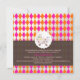 Convites PixDezines harlequin/rosa+laranja/chá de fraldas/D