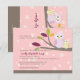PixDezines, uma coruja de bebê com sua mamãe tocando em um galho com estrelas e corações no fundo. Background + trim pode ser personalizado. Cores suaves e sutis adicionam um toque feminino para destacar seu evento exclusivo futuro. Mas você pode escolher qualquer cor!
