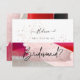 PixDezines, moderno brilhante e ousado, será meu cartão de dama de honra na coleção de convites para casamento em vermelho e preto. Apresentando pincéis de aquarelas no sangue do pombo, vermelho, preto, rosa, prata e pincel. Outros recursos, como rótulos e favos de mel doces, são editáveis ou mudam seu tom. Fácil de redesign de nossos vários modelos. Copyright © 2019 PixDezines™. Todos os direitos reservados.