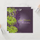 PixDezines Monstera, folhagem tropical, em tons de roxo e verde-limão com fundo degradê roxo escuro removível, etc. Convites de casamento também adornados com espirais peroladas. Copie+cole quaisquer elementos.