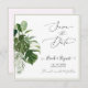 PixDezines variou monstera, palmas, folhagem de ficus de tubérculos em verde-floresta claro e escuro e bela sombra de cinzas, verde-florestal e marfim. Greenery Salve a data com um roteiro de caligrafia moderno.