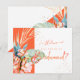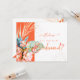PixDezines Orchid Isle, orquídea coral laranja aquarela e palmeiras com hosta verde e folhas de ti azul para um cartão de pedido de dama de honra. Acentuado com letra manuscrita moderna. Cores de casamento rosa e azul para um evento tropical. Nosso design dinâmico permite que você edite todos os elementos. Veja o botão personalizar para editar imagens, girar e adicionar informações adicionais ou monograma.