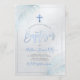 Batismo PixDezines, com palmas prateadas e fundo azul iridescente. Nós acentuamos com a fonte de script moderno rosa.