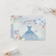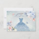 PixDezines cartão de recepção de quinceanera com borboletas azul-acinzentadas aquarela, rosas, vestido brilhante em azul-acinzentado e fundo azul-claro iridescente (veja os filtros para mudar o tom) e confetes. Todos os elementos são editáveis.