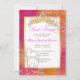 PixDezines Sweet 16, um tratamento real para os convites Sweet Sixteen da sua princesinha. Redemoinhos Arco-íris e Rossi Damask em cor champanhe e mistura de rosa fúcsia e laranja-mandarim no fundo. Também uma tiara adornada com pérola.