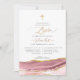 PixDezines Convite para Batismo, com aquarela agata em rosa-pinto-claro, rosa-pinto-poeirento, mauve empoeirada e veias de ouro-farelo, uma cruz acentuada com roteiro de caligrafia de luxo. Todos os elementos editáveis e removíveis. Copyright © 2023 PixDezines™. Todos os direitos reservados.
