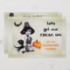 Uma linda, mas preferencialmente, bruxa de píxias assustadora convida seu entrevistado neste convite da festa de Halloween. Uma gata preta implora por sua atenção, um morcego negro voa sobre a cabeça, e um jack laranja brilhante ou lanterna fica ao seu lado. O texto, em preto e laranja, diz que o Vamos fica com o nosso FREAK ON no nosso Festa de Halloween! O verso do convite mantém o texto personalizado do seu partido entre três morcegos negros. Única e divertida!