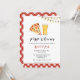 Diversão da Watercolor Pizza e ilustração da água da cerveja com convite para chá de fraldas de gingham vermelho e branco.