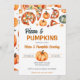 Pizza e abóbora de festa convite para modelo de entrega digital instantânea, pizza aquática e abóbora para a festa de abóbora do Halloween.