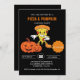 Pizza e abóbora de modelo de convite de festas, pizza aquática e abóbora para uma festa de abóbora de Halloween.