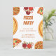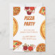 Convide seus amigos e família para sua festa e compartilhe a pizza! O convite mostra uma variedade de pizzas e coberturas.