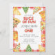 Prontos para uma festa de aniversário com tema Pizza? Este design apresenta fatias deliciosas de pizza pintadas à mão, revestidas com uma série de toques de água da boca, ilustrações e tipografia "Fatia de diversão". Localizar itens correspondentes no meu compro.
