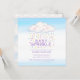 Um convite à forma quadrada de chá de fraldas de chave baixa para o bebê borrifado, com uma pintura aquosa brilhante de uma nuvem feliz que apresenta doces coloridos, borrifa centenas e milhares. Cujo neutro segundo, terceiro, quarto ou mais convites para chuveiros de bebês. Outros itens correspondentes estão disponíveis. Personalize com os seus próprios detalhes do banho de bebê. © Pintura manual exclusiva em aquarela e projetada por Sarah Trett para www.mylittleeden.com