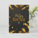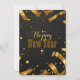 Apresentando um fundo escuro, ele se rompe com confete de ouro e peças brilhantes explodindo para fora, criando uma vibração energética e festiva.