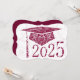 Designs florais sobre boné de formatura, fundo e ano. Borgonha e burlôncio num fundo branco. As costas têm um fundo burguês com letras brancas para os anúncios de graduação