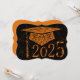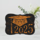 Designs florais sobre boné de formatura, fundo e ano. Boné de formatura preto sobre fundo laranja. O fundo tem um fundo laranja com letras negras para os anúncios de graduação.