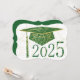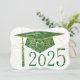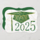 Designs florais sobre boné de formatura, fundo e ano. Verde sobre fundo branco. O fundo tem um fundo verde com letras douradas para os anúncios de graduação.
