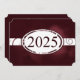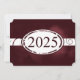 Botão de design floral ao redor sobre uma fita branca que tem designs florais. Fundo turvo de Maroon. A parte de trás do cartão tem um fundo de marrom com letras brancas para os anúncios de graduação.