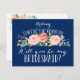 Placa de Bridesmaid com Marinho floral, com flores cor-de-água rosa.