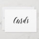 Sinal de casamento "Cartões" em estilo de caligrafia preto e branco simples e elegante.