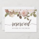 Indique assentos reservados em seu casamento com este elegante cartão de 5x7. Personalize com duas linhas de texto personalizado em caligrafia e letras maiúsculas modernas (mostrado com "Reservado" e o nome do convidado com assento reservado, com uma borda superior de flores e folhagens em aquarela pastel que combina com a nossa coleção de casamento floral Midsummer.