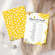O tema Abelhas apresenta um layout amarelo de abelha, uma carta de palavras rasgadas para o chá de fraldas As palavras neste cartão estão todas relacionadas a bebês e foram embaralhadas. Os hóspedes vão competir para ver quem pode desembaraçá-los todos primeiro! CHAVE DE RESPOSTA: 1. 2. Leite 3. MÓVEL 4. Pacificador O quinto ponto é uma cadeira de balanço de fralda. 7. berçário 8. baby monitor; 9. swaddle 10. SOMBROS. 11. BLANKET 12. carrinho. 13. SWADDLE. 14. 15. CRIB.