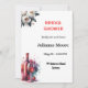 A trabalho de arte de aquarela retrata lindamente uma elegante decoração de flores de casamento e um copo de vinho emparelhado com uma rica garrafa de vinho tinto, expondo sofisticação e tranquilidade.