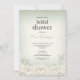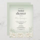 Crie uma primeira impressão graciosa com este chá de panela, com uma base aquosa verde-salva-cinza suave misturada ao marfim no centro. Delicado marfim e pequenos aglomerados de hálito de bebê destacam a borda inferior e o canto inferior, acrescentando um encanto floral natural. O layout fornece texto editável, fazer fácil de personalizar com os detalhes do evento.