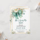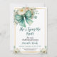 Um cartão de chá de panela com na moda com elegantes florais de aquarela, verde verde e um arco verde ousado. Os detalhes pastéis suaves e o layout moderno fazem dela uma bela escolha para celebrar o amor e a amizade de uma forma eterno e feminina.