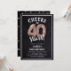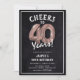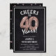 Celebrando a 40! Estes convites para aniversário de 40 anos são projetados com o título 'Saúde a 40 Anos!'. Apresentando um fundo chalkboard rústico, rosa de ouro 40 balões de hélio, tipografia branca moderna e um modelo simples de festa de aniversário que é fácil de personalizar.