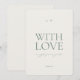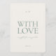 Uma elegante e minimalista placa de favor de casamento Com Amor projetada em tons de verde sage suave.
