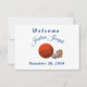 O design do chá de fraldas Boy Toys apresenta a imagem dos típicos brinquedos dos meninos. Um carro de corrida, ursinho de pelúcia, basquete e beisebol são fotografados no centro. A palavra "Bem-vindo" aparece acima do nome do bebê, que é apresentado num arco acima da imagem. A data de vencimento é exibida abaixo. Todo o texto em letra azul. Projetado para coordenar com o tema de chá de fraldas e berçário da coleção "Boy Toys". Inverter apresenta instruções personalizáveis para um jogo de chá de fraldas. Perfeito para o chá de fraldas.