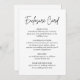 O "moderno Cartão de Invólucro de Casamento de Script Manuscrito" casado maravilhosamente o design contemporâneo com um toque pessoal. Apresentando um roteiro elegante e fluente, este cartão transmite detalhes essenciais de casamento, como direções, acomodações ou mensagens incríveis. Seu layout de na moda adiciona sofisticação a qualquer conjunto de convites, fazer-o perfeito para casais que apreciam uma estética moderna. Este cartão de visita não só informa, como também expressa calor e intimidade, garantindo que seus convidados se sintam valorizados enquanto se preparam para celebrar seu dia especial.