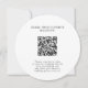 Apresentando um esquema clássico de cores preto e branco e uma forma redonda única, esta Cartão de Gabinete de Código QR Minimalista de Casamento Único adiciona um toque de simplicidade de chic à sua suíte de casamento. Personalize-o com seu próprio código QR para permitir que seus convidados acessem facilmente sua galeria online ou seu site de casamento e façam upload de seus momentos favoritos do evento. Com tipografia limpa e um layout mínimo, este cartão é o complemento perfeito para qualquer tema de casamento contemporâneo. Mantenha-o simples, mas na moda, com esta placa de gabinete surpreendente - a melhor escolha para casais que procuram um eterno e uma solução de convite sofisticada.
