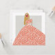 Mulher fashionista vestindo um vestido longo com flores e folhas brancas. Você pode mudar a cor do vestido mudando a cor do fundo. Les Demoizelles ilustra a moda no cartão de vazio. Mão desenhada e terminada digitalmente. Enquadre-o, envie-o com uma mensagem curta, ou use-o como um marcador com uma afirmação pessoal para o seu próprio crescimento.